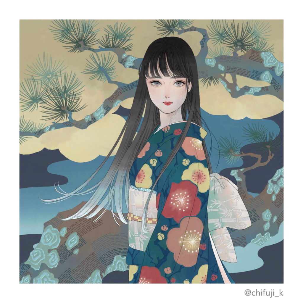 着物が好きで和風な絵ばかり描いていたので
