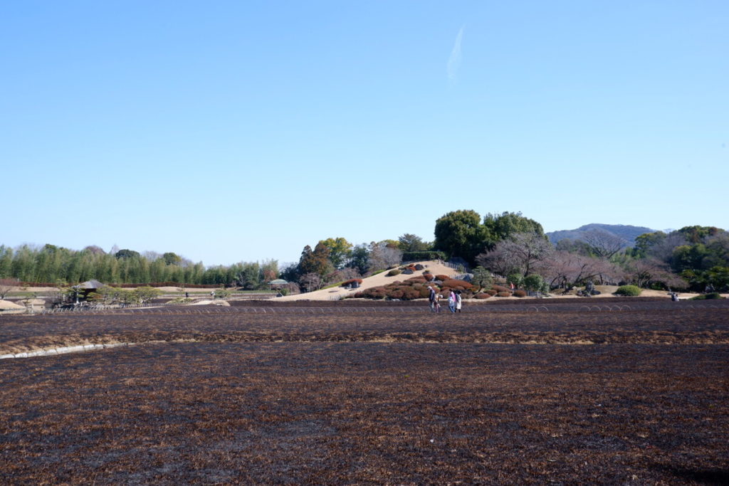園内の大部分を占める芝が焼かれていて、今までの季節とは全く違った景色です。