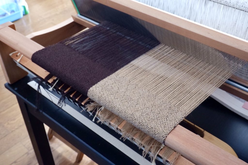 一枚織り上げるのにそれなりの労力が必要ですが、ペダル式の織り機はちょっとね…