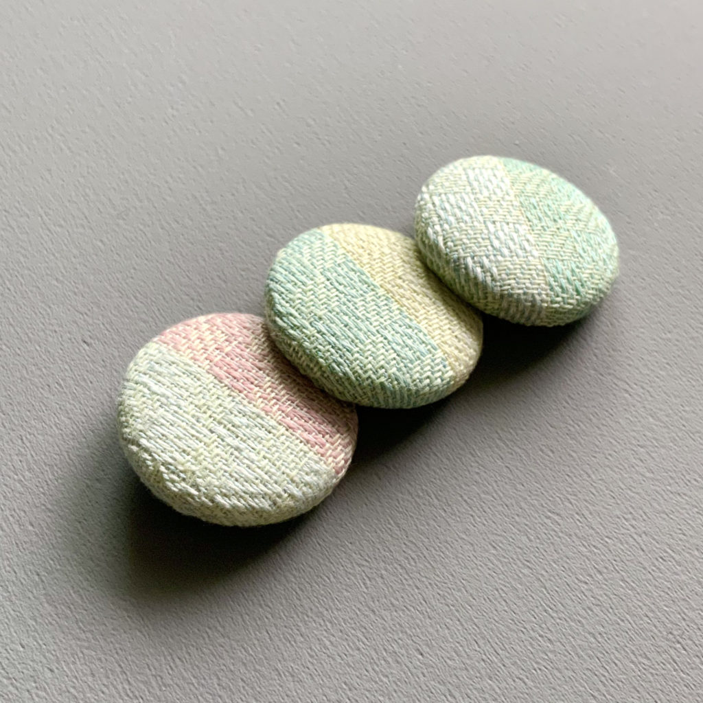 試し織の生地を使ってくるみボタンを作ってみたり。