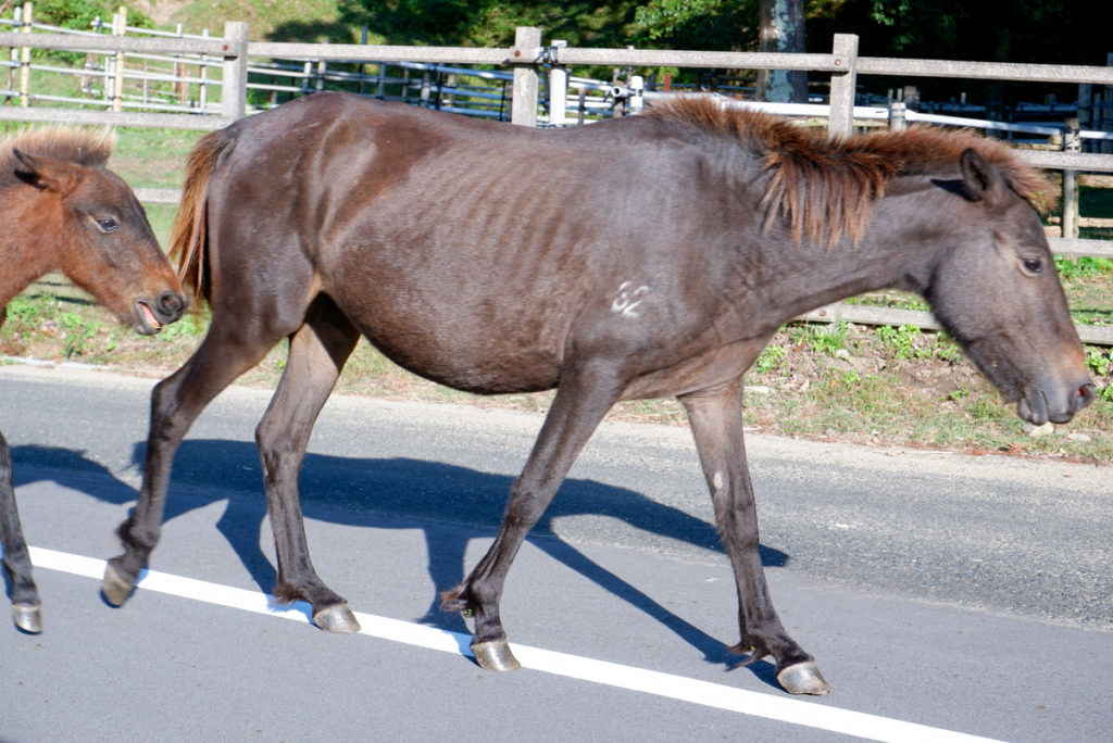 国の天然記念物に指定されてる希少な日本在来種の野生馬が生息しています。